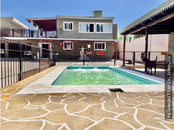 Esta propiedad se desarrolla sobre un terreno de 800 m² con 295 m² cubiertos, ofreciendo amplios espacios, detalles artesanales y un entorno natural incomparable. Al ingresar, una galería semicubierta decorada con esculturas y detalles artísticos da la bienvenida. Desde allí se accede al living, cálido y confortable, equipado con salamandra, que conecta de forma fluida con la cocina-comedor, amplia y luminosa, también podemos encontrar dos dormitorios y un baño completo, todo dispuesto de manera funcional para la vida diaria. Una escalera interior conduce a la planta alta. En el nivel superior, un hall distribuidor da paso a los distintos ambientes. Allí se ubican dos dormitorios, uno de ellos con baño completo en suite y vestidor. Desde el hall se accede también a una terraza con galería semicubierta, ideal para disfrutar momentos de descanso con vistas abiertas al patio, la piscina y los cerros. Ademas, podemos hallar un ambiente independiente destinado a playroom, gimnasio o taller. El exterior de la propiedad es un verdadero espacio de disfrute. Cuenta con una piscina cercada con hidromasaje, acompañada por un sector semicubierto para relajarse, un amplio quincho/cochera para dos vehículos con asador, horno y mesada, y otra cochera semicubierta con capacidad para cinco autos. También dispone de un depósito exterior y un sector verde.